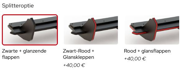 Producten kunnen worden vervaardigd in de volgende opties: 10 mm dik matzwart, 10 mm dik matzwart met rode kern,