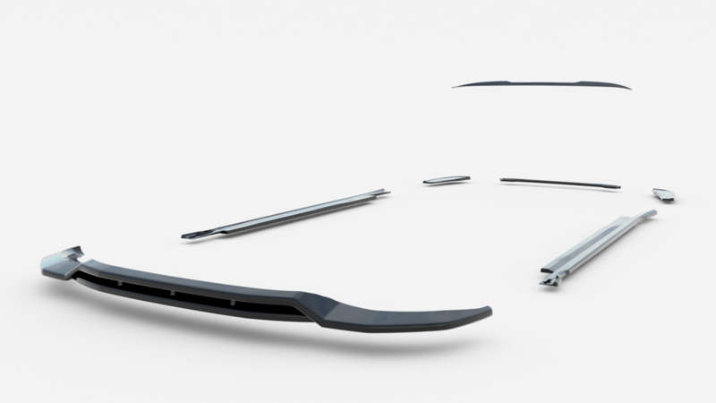 De splitter verlaagt de auto visueel en verbetert de grip en stabiliteit van het voertuig.