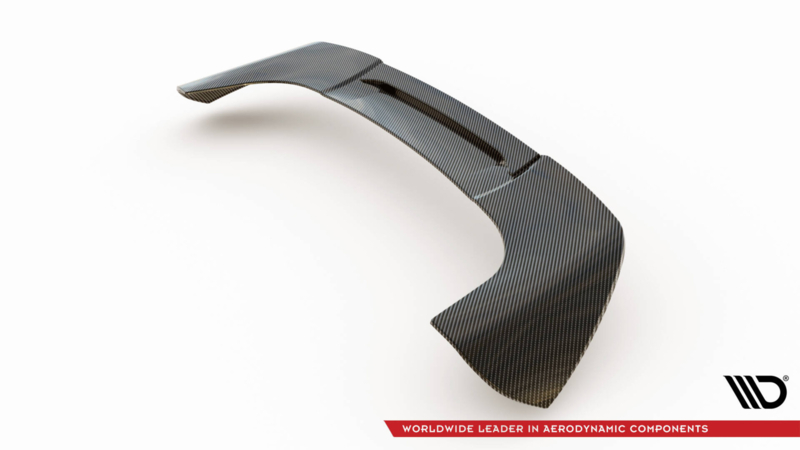 Deze achterklepspoiler beïnvloedt de luchtstroom rond de carrosserie. Hij stuurt de luchtstroom aan de achterkant van de auto en versterkt en benadrukt visueel het racekarakter. De achterklepspoiler wordt gemonteerd met zeer sterke 3M-tape met een activator. Deze installatiemethode voorkomt dat de structuur van het element wordt aangetast, wat de stevigheid ervan niet aantast.