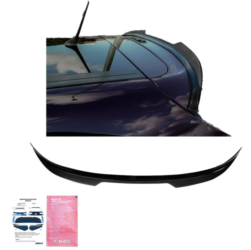 Gestroomlijnde afwerking in glanzend zwart: Voeg een vleugje elegantie en stijl toe aan uw dakspoiler met onze spoilerkap. Deze elegante spoilerverlenging verbetert niet alleen de esthetiek, maar zorgt er ook voor dat uw auto opvalt op de weg.