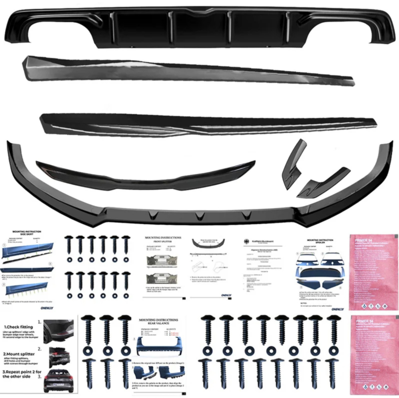 De set bestaat uit: voorspoiler, achterspoiler, sideskirts, diffuser, achtersplitters