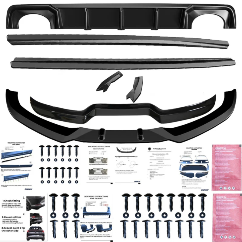De set bestaat uit: voorspoiler, achterspoiler, sideskirts, diffuser, achtersplitters