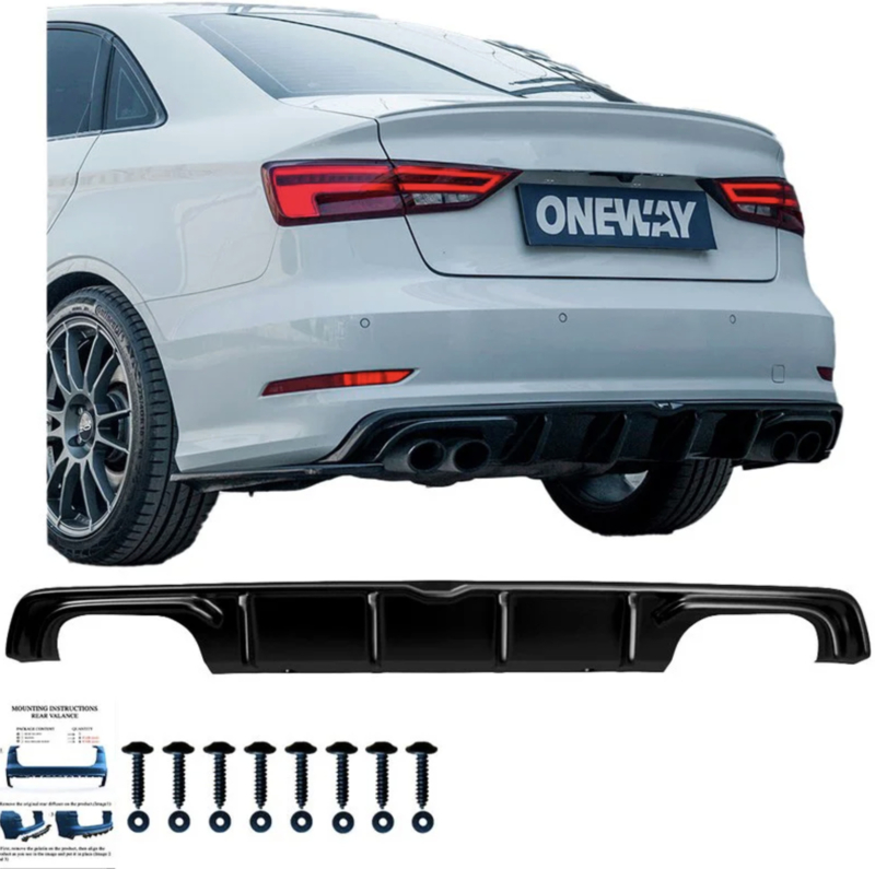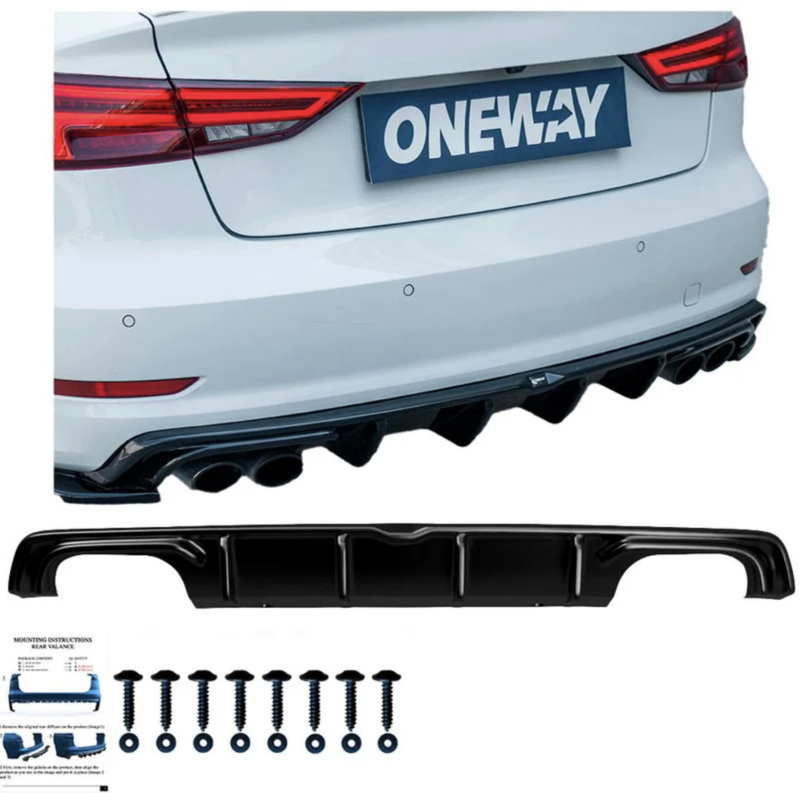 Artikelnummer: OW RV21011 ASOneway Achterbumperskirt (Diffuser) passend voor Audi S3 Sedan 8V 2013-2016 - Glanzend zwart