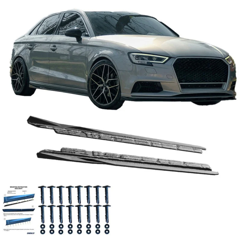 Oneway Set Sideskirts passend voor Audi A3 (8V) Sedan Facelift 2016-2020 - Glanzend zwart