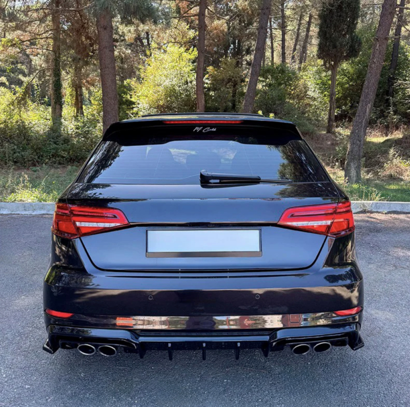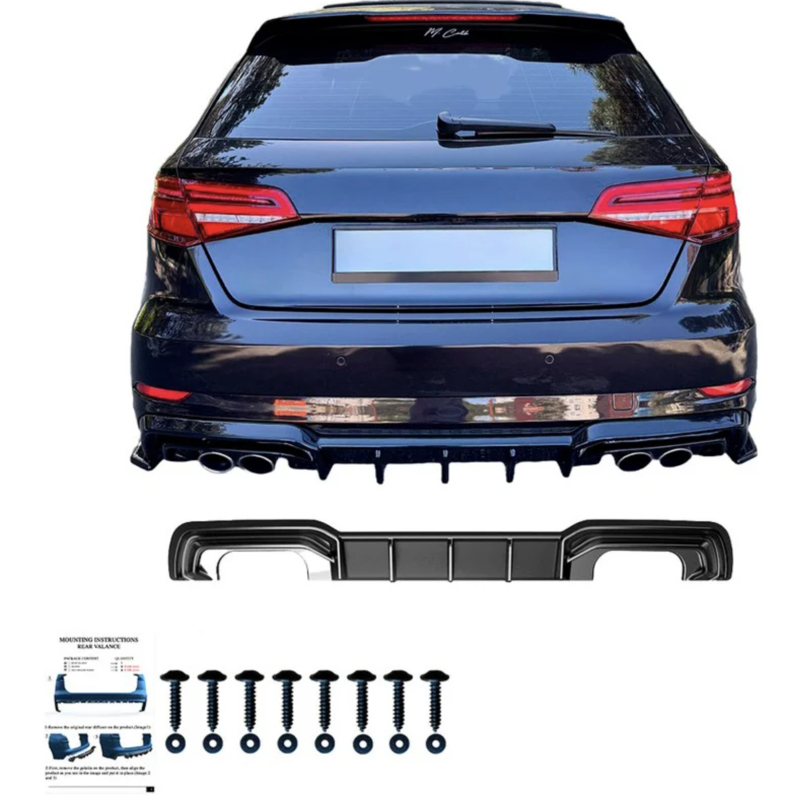 Oneway Achterbumperskirt (Diffuser) passend voor Audi S3 Sportback 8V Facelift 2016-2020 - Glanzend zwart