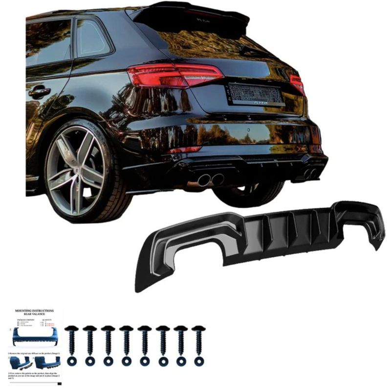 Artikelnummer: OW RV21033 ASOneway Achterbumperskirt (Diffuser) passend voor Audi S3 Sportback 8V Facelift 2016-2020 - Glanzend zwart