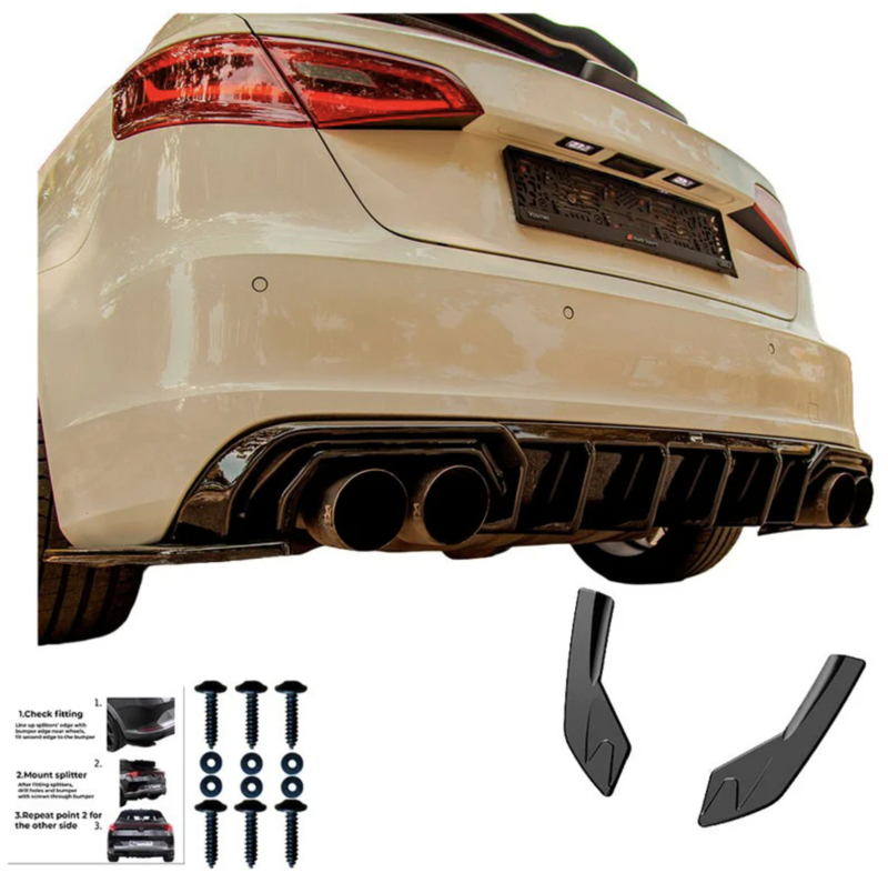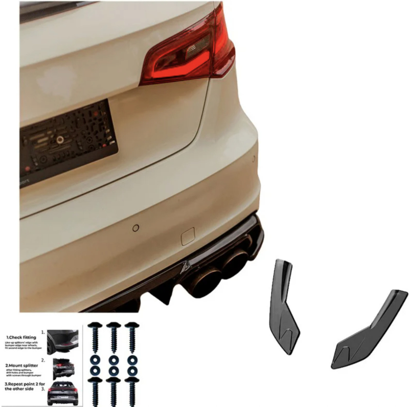 Oneway Achterbumperskirts (Hoeken) passend voor Audi S3 8V Sportback 2013-2016 - Glanzend zwart