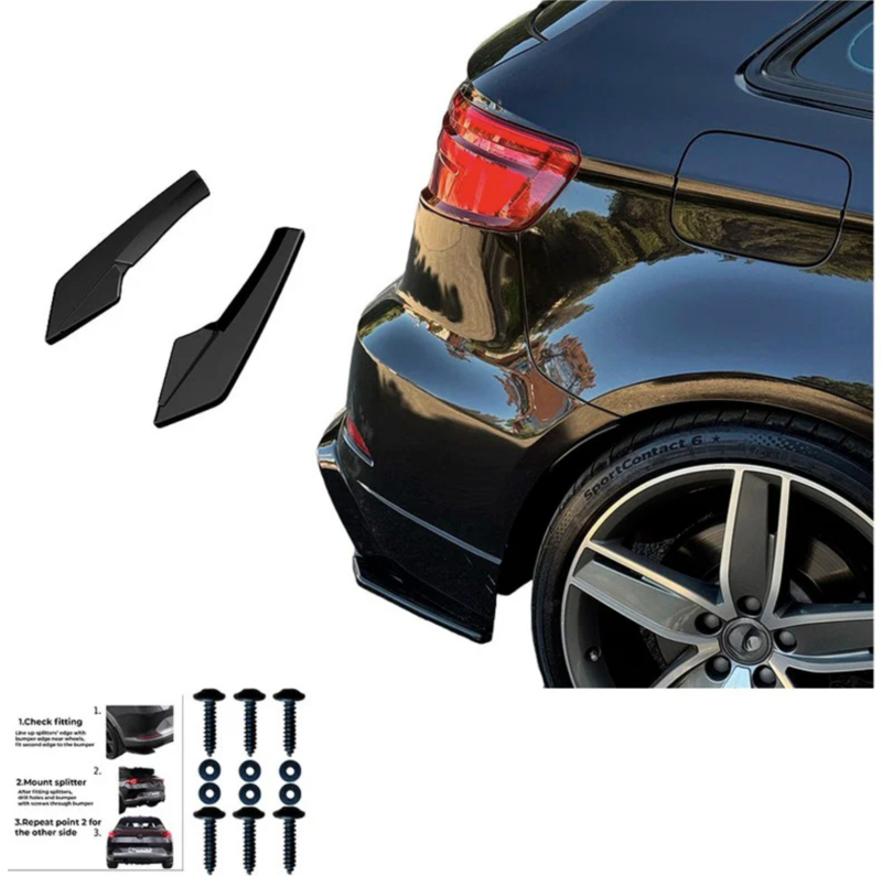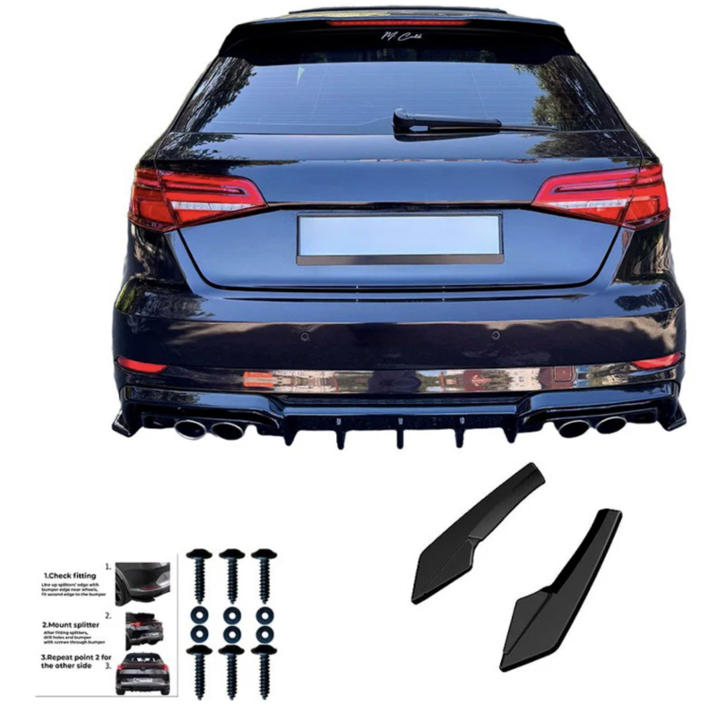 Oneway Achterbumperskirts (Hoeken) passend voor Audi S3 Sportback 8V Facelift 2016-2020 - Glanzend zwart (Enkel passend i.c.m. OW RV21033)