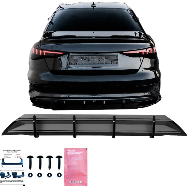 Oneway Achterbumperskirt (Diffuser) passend voor Audi A3 (8Y) Sedan/Sportback 2020-2024 excl. S-Line/S3/RS3 - Glanzend zwart