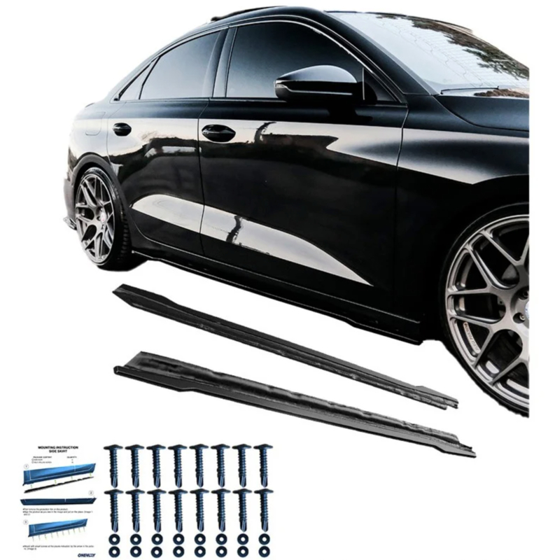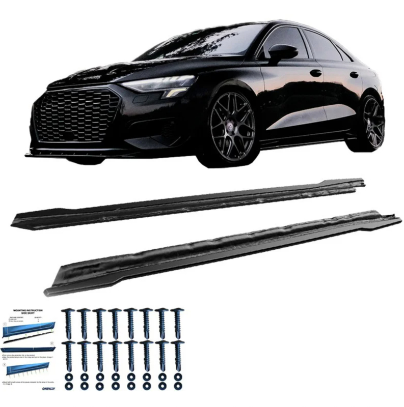 Oneway Set Sideskirts passend voor Audi A3 (8Y) Sedan/Sportback 2020-2024 excl. S-Line/S3/RS3 - Glanzend zwart