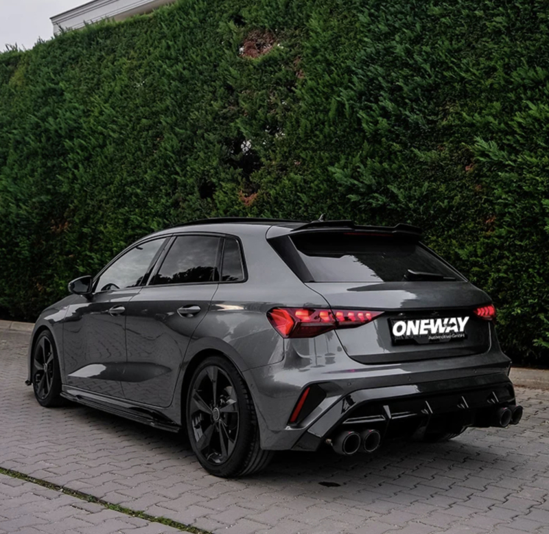 Oneway Dakspoiler passend voor Audi A3/S3/RS3 (8Y) Sportback 2020-2024 & Facelift 2025- - Glanzend zwart