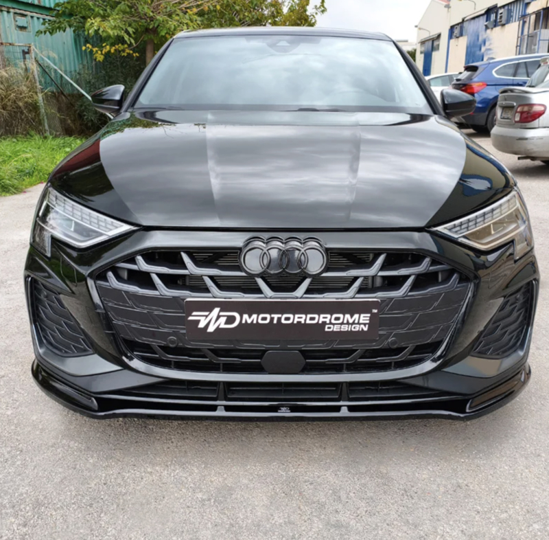 Motordrome Voorspoiler passend voor Audi A3 (8Y) Sportback & Sedan S-Line / S3 Facelift 2024- (ABS Glanzend zwart)