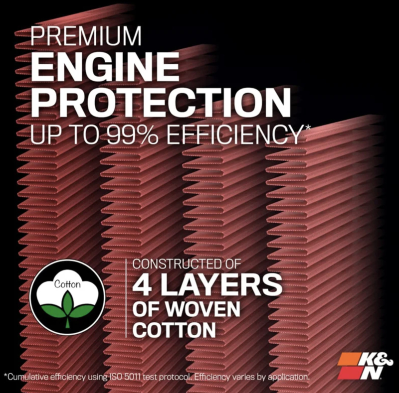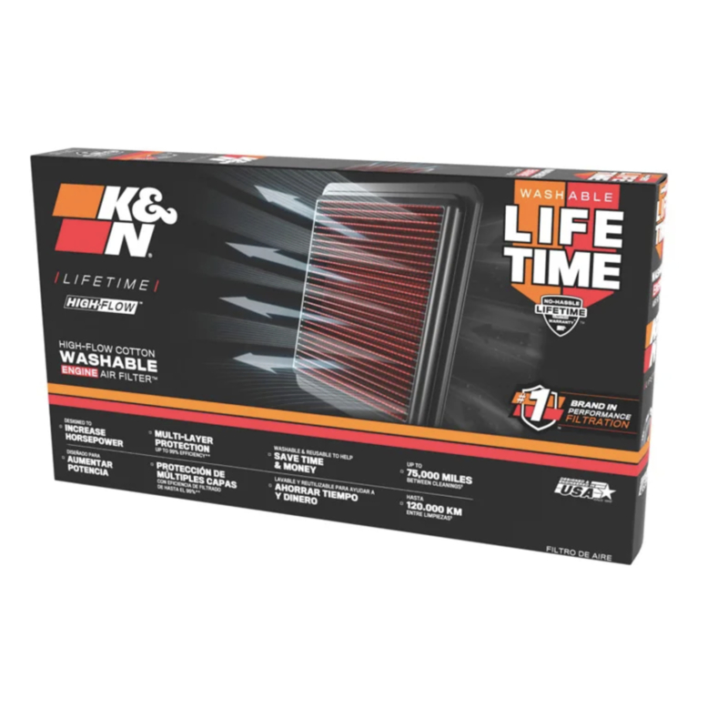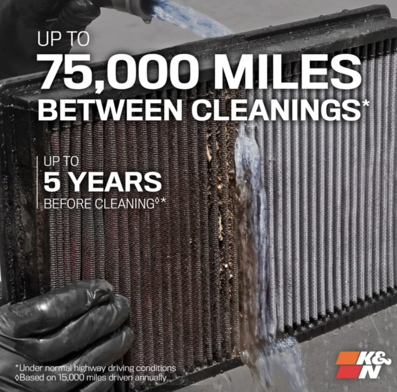 K&N inlegfilter. Het filter gaat net zo lang mee als de levensduur van jouw motor. Als jouw auto een onderhoudsbeurt krijgt wordt er normaal een nieuw filter geïnstalleerd. Een K&N filter kan je gewoon wassen en weer hergebruiken. Hierdoor bespaar je aanzienlijk op het luchtfilter en onderhoudskosten.