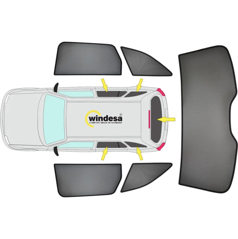- Premium zonneschermen voor alle ruiten vanaf de B-stijl, achterruitdeel vervaardigt uit één stuk!