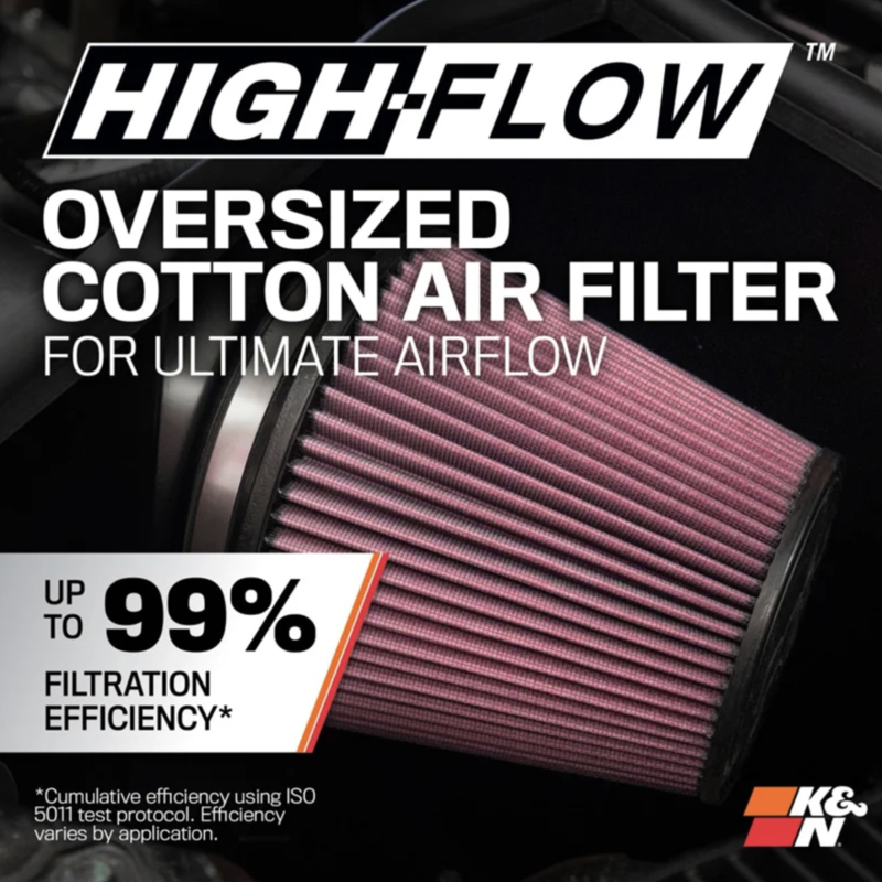 K&N Typhoon kit. Een blik onder de motorkap van moderne auto’s maakt al snel duidelijk dat de luchttoevoer wordt beperkt door onnodige bochten en knikken. Lucht stroomt het beste in een rechte lijn en wordt het liefst niet door het filtermateriaal afgeremd.