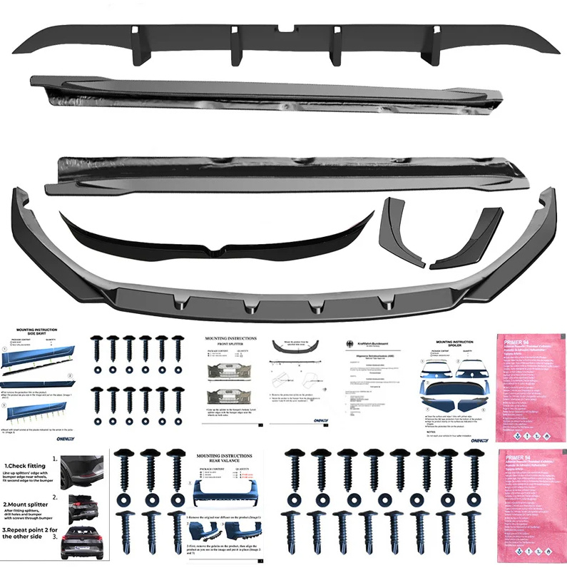 De set bestaat uit: voorspoiler, achterspoiler, sideskirts, diffuser, achtersplitters