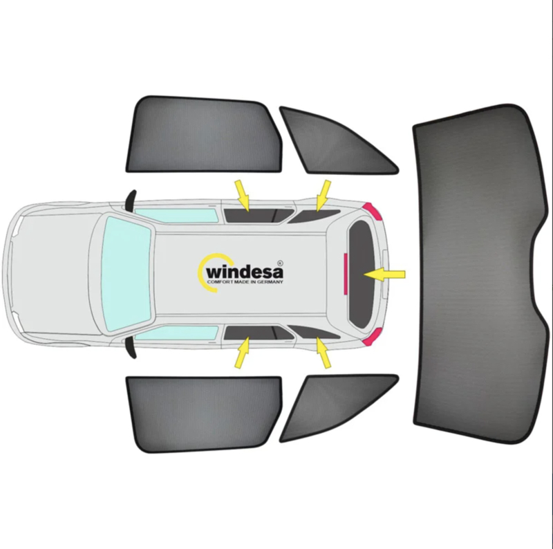 - Premium zonneschermen voor alle ruiten vanaf de B-stijl, achterruitdeel vervaardigt uit één stuk!