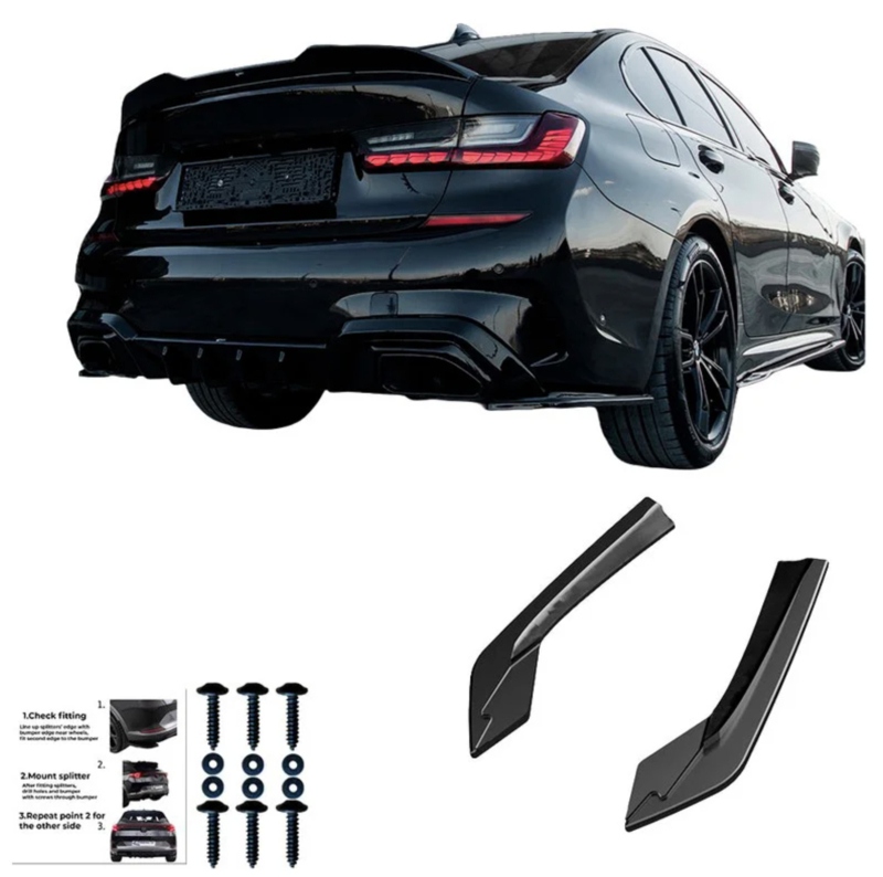 Oneway Achterbumperskirts (Hoeken) passend voor BMW 3-Serie G20/G21 M-Pack 2018-2022 - Glanzend zwart