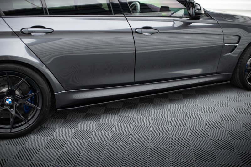 Waarom zou u overwegen om de BMW M3 F80 V.1 sideskirts diffusers aan te schaffen? - Ze zijn verkrijgbaar in verschillende oppervlakteafwerkingen - Ze worden klaar voor montage geleverd - Ze zijn bedekt met een UV-werende laag - Ze hebben het TUV MATERIALGUTACHTEN-certificaat - Ze hoeven niet te worden geverfd.