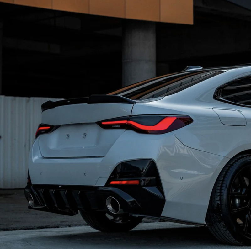 Oneway Achterbumperskirt (Diffuser) passend voor BMW 4-Serie G26 M-Pack/M440i 2021- (met dubbel rond of ovale uitlaatsierstukken) - Glanzend zwartOneway Achterbumperskirt (Diffuser) passend voor BMW 4-Serie G26 M-Pack/M440i 2021- (met dubbel rond of ovale uitlaatsierstukken) - Glanzend zwart